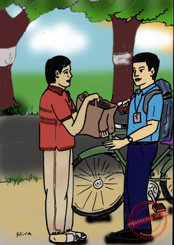 “ சரிப்பா, ஜாக்கிரதையாப் போயிட்டு வா. லஞ்ச் பாக்ஸ் ஞாபகமா எடுத்துக்கிட்டயா? ஏதோ இன்னைக்கு ஸ்கூலில் புராஜெக்ட் கொடுக்கணும்னு சொன்னயே? முடிச்சு எடுத்துக்கிட்டயா? ” அம்மாவின் குரல் காதில் விழுந்தது.