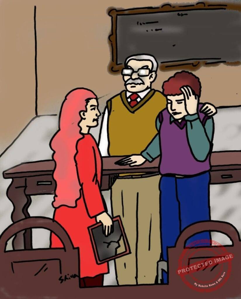 “என் மாணவியிடம் இந்த அளவு கோபமும் பழி வாங்கும் உணர்வும் இருப்பதை நினைத்து வருந்துகிறேன். ஆனி! கரும்பலகை முன்னால் போய் இன்று பிற்பகல் முழுவதும் நில்” என்றார் ஆசிரியர்.