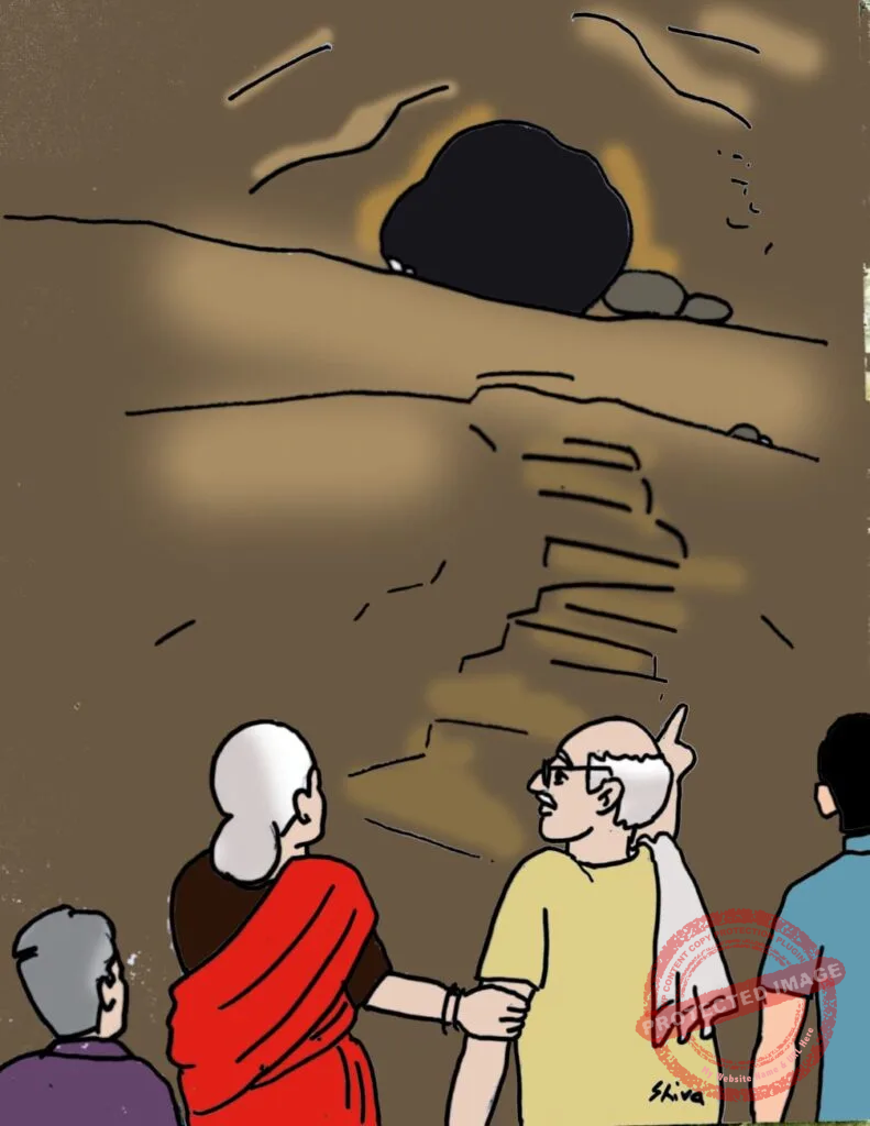 “குகைக்கு போனாதான் தெரியும்..” என்று கூறிய சொக்கு தாத்தா குகையை நோக்கி வேகமாக நடந்தார். அவர் பின்னாலேயே மீனுப் பாட்டியும் ஊர்க்காரர்களும் சென்றனர்.