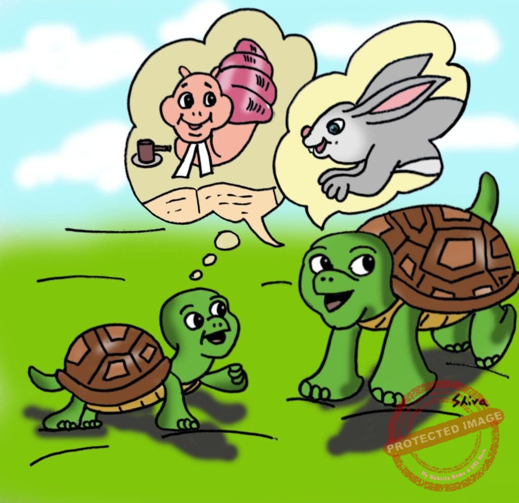 “அந்த போட்டிக்கு நடுவர் யார் தெரியுமா? நத்தை” சுவாரஸ்யமா சொன்னது டக்கு.